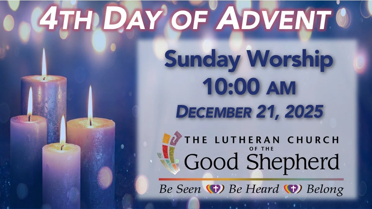 Enjoy Sunday Morning Worship at 10 am in Good Shepherd’s beautiful sanctuary. A play area next to the worship are will be available for the youngest among us. A staffed nursery is also available in Room 114. A recording of the sermon will be posted on Sunday afternoon here on the website home page and on Facebook and YouTube. The pre-worship Forum and Children/Youth Activity Time begins at 9 am, Hospitality & Fellowship coffee & treats immediately following worship, and Sunday School (Pre-8th) begins at 11:30 am in Room 114.